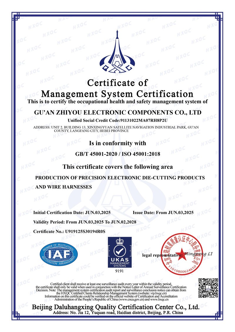 職業(yè)健康安全管理體系認(rèn)證證書(shū)